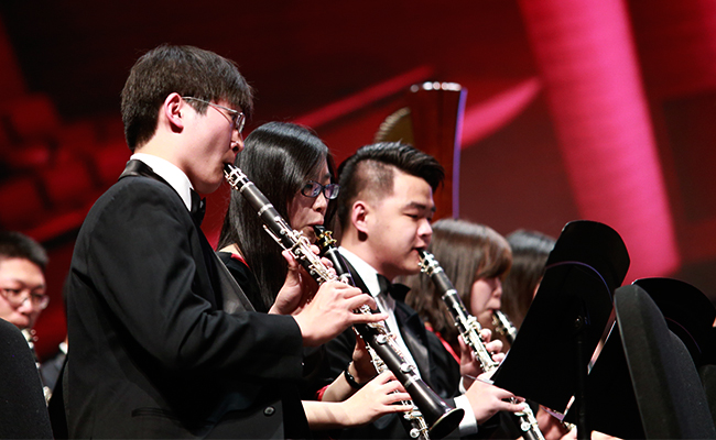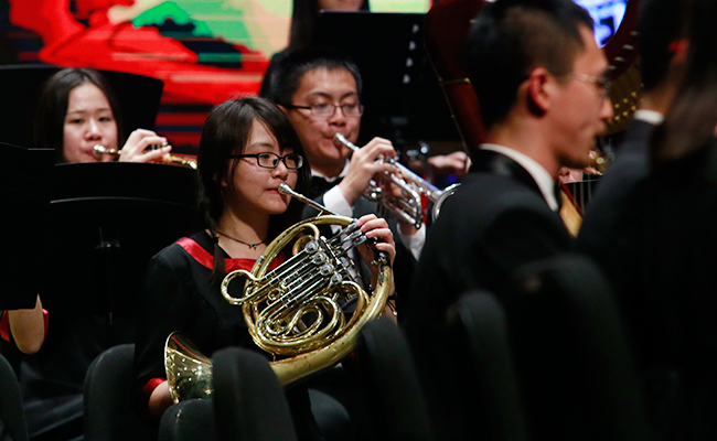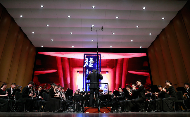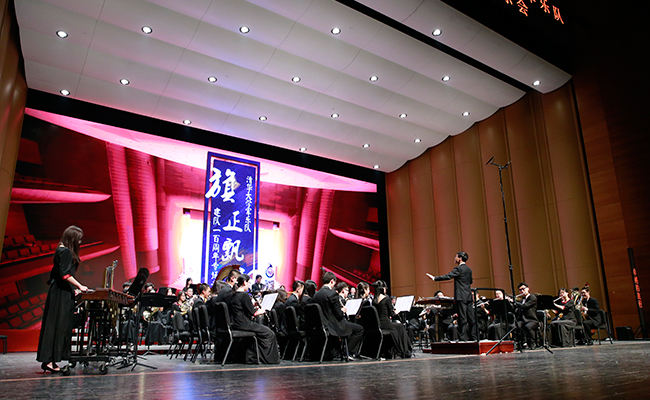乐鱼(中国)网4月28日电 (记者 张 宇 摄)4月24日,“旗正飘飘”——纪念学生艺术团军乐队百周年专场音乐会在新清华学堂举行。近千名军乐队队友与现场1000多名观众共同见证了这一历史性的时刻。