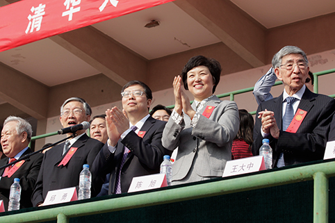 姜胜耀说,长期以来,清华始终坚持“育人至上,体魄与人格并重”的体育教育观,培养出一批又一批德、智、体全面发展的优秀人才。近年来,我校积极探索体育教学模式改革,注重课内外结合,效果显著。“马约翰杯”运动会为同学们提供了人人参与、人人体验的大平台,相信“马约翰精神”将会给每个清华学子留下永恒的烙印。他希望同学们以此赛事为契机,提高竞赛水平、形成自觉锻炼的好习惯,这必将使同学们受益终生。