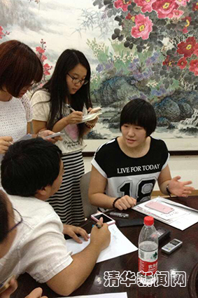 听说清华的游泳馆是世界一流的专业场馆,她表示迫不及待地想要去游泳馆看一下,和清华爱好游泳的同学们一起畅游。面对9月份即将到来的仁川亚运会,叶诗文加紧训练,充满信心。她说自己要“努力给清华一个世界纪录!”。