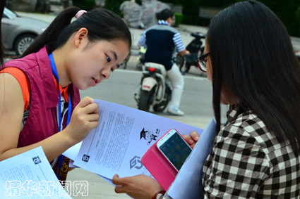 此外,志愿者里还有不少新面孔。来自医学院的研究生新生朱芸增同学从8月31日开始就加入到迎新工作中,领取资料、分配资料,并且在一大早就到达迎新点,作为志愿者一同帮忙新生入学。她说“我是今年研究生暑期团校的学员,在团校的这段时间得到了很多师兄师姐的帮助。我也想为其他同学提供力所能及的帮助,传递清华人的正能量。”