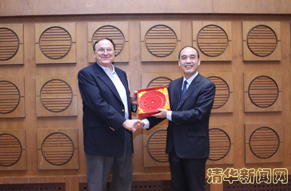 图为袁驷向萨文迪赠送演讲纪念品。记者 智斐 摄