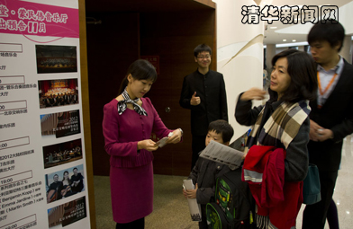 图为礼仪队队员在新清华学堂对观众进行引导服务。