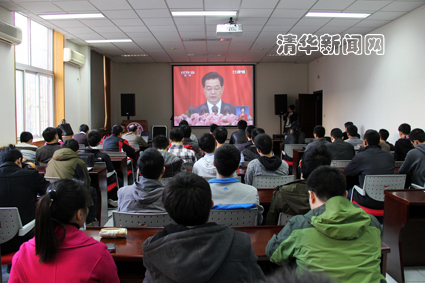 图为计算机系一层会议室观看十八大现场。 李钧翔 摄