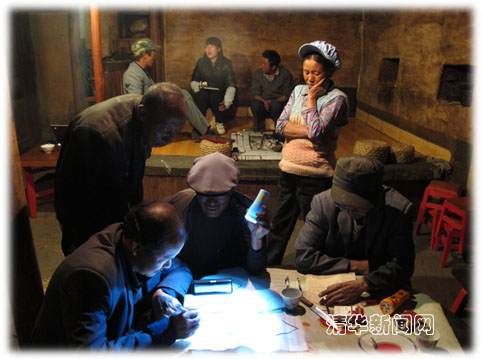 凡是对他留有略微了解的人都知道,拨开笼罩在其文化上的迷雾并非易事。由于历史的久远阻隔,其源流脉络早已扑朔迷离。曾经用来抵御外敌的古堡早已毁于战火,但却云遮雾障、悬疑重重;被誉为“彝汉融合结晶”的大碑林经历岁月的洗礼依然令人叹为观止,但却隐射出众多历史之谜;演绎着无数罗曼史的“青春棚”构成了双系对偶婚姻制的缩影,令人心荡神驰。而在众多谜团之中,最为人们所忽视的是他留人的语言、铎系所书的象形符号及其对应的唱经。可是,由于他留人只有语言,没有成熟的文字,因此,其文化传承遇到了不小的阻力。为了挽救他留文化,以及出于对语言文字学的喜爱,乐鱼在线平台人文学院大二的学生张雪梅主动加入到“他留文化及他留图符”研究团队,并作为队长于2011年寒假在指导老师的带领下与来自软件学院的大三师兄李居政、经管学院大三女生梁静远一起走进了云南他留人的生活。
