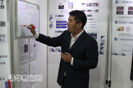 图为李诚在全国“挑战杯”比赛现场介绍展示自己的作品。