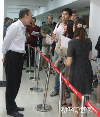 袁驷代表学校向来自各国的留学生表示诚挚的欢迎和亲切的问候,并向他们简要介绍了清华的历史和发展情况,祝愿他们在清华学习生活顺利,将来成为优秀的清华校友。