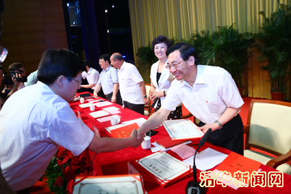 图为校党委书记胡和平为获得表彰代表颁奖。记者 智斐 摄