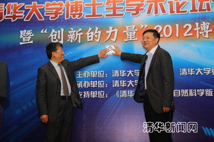 郭新立司长与陈吉宁校长共同按下屏幕上的按钮,启动“创新的力量”2012乐鱼在线平台博士生学术论坛。