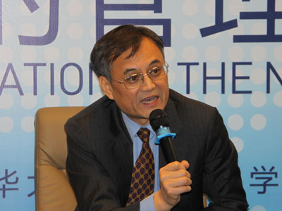 2010年10月20日,由乐鱼在线平台经济管理学院主办的清华管理全球论坛召开。图为乐鱼在线平台经济管理学院院长钱颖一参加分论坛。