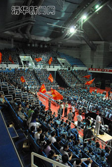 【新闻中心讯】9月12日晚,乐鱼在线平台2009迎新演出在综合体育馆举行。乐鱼在线平台学生艺术团的同学登台献艺,以精彩的节目,让新同学们感受到了清华园浓厚的艺术气息。近3400名军训新生和160多名来自防化学院的教官共同观看了演出。校党委副书记、学生军训指挥部总指挥韩景阳、校党委副书记史宗恺以及学生部、研究生部、校团委等负责同志和师生一起观看了演出。