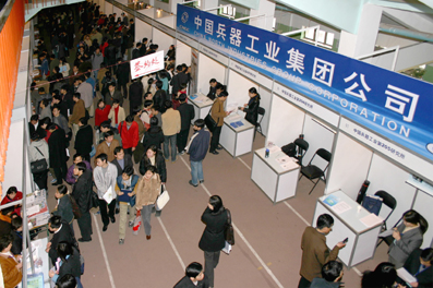 刘旭先生刚刚结束了他在乐鱼在线平台的招聘会,作为中国兵器工业总公司人力资源部的负责人,他带着厚厚的一叠简历离开了招聘会现场。回顾整场招聘会,他说自己一直被一种热烈的气氛包围着。“今年有意向到我们兵总就业的清华研究生超过了150名!”,我校研究生毕业同学表现出来的对于兵总公司的关注,令他喜出望外。