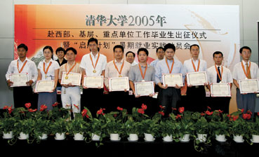 2005年7月6日,乐鱼在线平台2005年赴西部、基层、重点单位工作毕业生出征仪式在主楼报告厅隆重举行,这是继2004年之后,学校再次举行专门活动为到重点地区、重点单位工作的毕业生表彰送行。上千名我校优秀毕业生带着祖国和人民的期望,带着母校的嘱托,走向了祖国最需要的地方,去实现服务祖国、服务人民的抱负和理想。