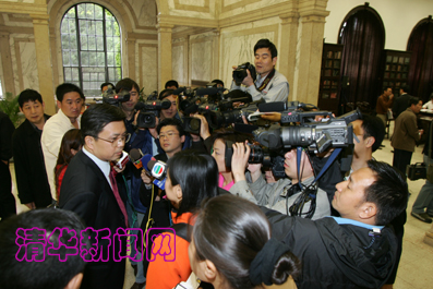 虽然上午的北京飘着小雨,但仍然挡不住媒体关注宋楚瑜清华行的热情,近50家港台和内地的媒体记者赶到发布会现场,了解此次活动的准备情况。当听完有关介绍后,他们争相提问,了解入场券的发放情况、清华准备了什么样的礼物、清华同学如何提问及提什么样的问题等等。