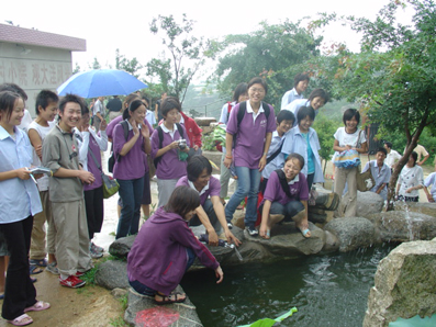 图片说明:美院学生2004年暑期到山东平邑社会实践进行绘画教学