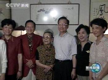 随后,温家宝又来到舞蹈艺术家戴爱莲的家中。