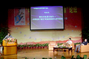 “中华复兴与青年使命”论坛是深圳举办的“青春中华”首届中国青年文化周的重头戏,北京大学哲学系教授何怀宏和中国社会科学院哲学研究所研究员周国平,分别就“中国走向现代的制度演进与青年使命”、“人文精神与青年使命”两个主题发表了演讲。