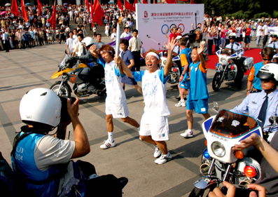 值得一提的是,此次传递雅典奥运圣火,我校校友邓亚萍和正在清华求学的王义夫是火炬手。机械工程系的硕士生朱慧和航天航空学院的博士生方红荣两名同学是火炬的护跑手,他们已经在今天上午10点多在北京站附近进行了各10分钟左右的护跑。