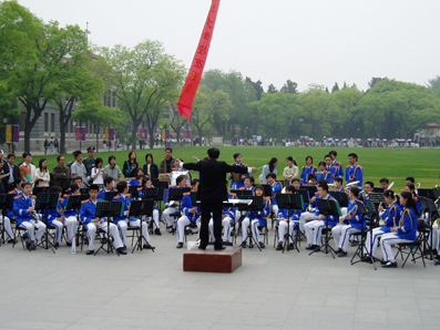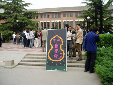 图书馆向来是校内最抢手的地方,里面几乎每天都座无虚席。虽说今天是校庆的大好日子,图书馆里仍有不少勤奋的同学在学习。交响乐队在图书馆前举办的“草坪音乐会”为同学们的学习生活带来了与往日不同的乐趣,也为校庆添上了一份喜庆色彩。