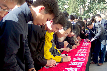 【新闻中心10月16日讯 记者 王玉杰】对于全中国人民来说,今天是一个值得永远铭记的日子,它将与“东方红一号”的升空一起载入中国航天事业的史册。我国首次载人飞船“神舟”五号于昨天顺利发射并于今晨成功登陆回归。将于明天参加首届全国博士生论坛的全国35个研究生院的328名博士生今早在乐鱼在线平台主楼前举行了签名仪式,庆祝我国自行研制的“神舟”五号飞船飞行成功和安全着陆。