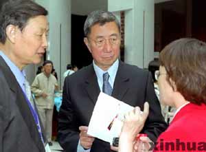 诺贝尔物理学奖获得者、美国麻省理工学院教授丁肇中(中)利用学术报告会间隙与国内学者交流。新华社记者 王呈选 摄