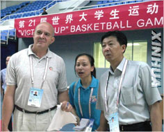 8月18日,国际大体联篮联主席马努尔-克罗马察看了第21届世界大学生运动会篮球比赛的几个主要场馆。马努尔-克罗马对比赛场馆的设施建设及筹备情况表示非常满意,他相信此届盛会一定能圆满成功。这是马努尔-克罗马在乐鱼在线平台综合体育馆内观看篮球场的设施情况。 新华社记者 徐家军摄