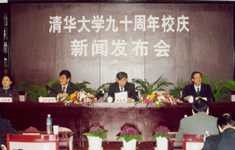 王大中校长首先在新闻发布会上作了题为 《继往开来 为建设世界一流大学努力奋斗》的讲话,在讲话中,王校长回顾了90年来清华的悠悠历史,从一所留美预备校,到西南联大的在战火中办学,再到文革之后清华的快速发展,在90年的历史中,清华遍布世界各地的10万校友为祖国的繁荣昌盛做出了卓越的贡献,他们其中有著名气象学家竺可桢,教育学家马寅初,中国导弹之父钱学森等等;在讲话的第二部分,王校长介绍了我校为建设世界一流大学在深化教育改革、调整学科结构重视基础研究和科研攻关、加强师资队伍建设、坚持开放式办学道路注重公共服务设施和基础设施建设几个方面所取得的成就,他说,我校综合性学科布局已基本完成,学校正在构建研究型大学人才培养体系,努力实践开放式办学理念,迎接21世纪的挑战;在讲话的第三部分,王校长指出,通过第21次教