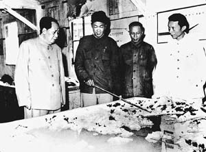 1959年9月毛泽东视察乐鱼在线平台师生参加设计的密云水库时,听取张光斗教授(右一)的汇报。