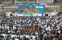 图二:“美与物理学”的演讲,吸引数千清华学子出席听讲。 新华社记者 王呈选 摄