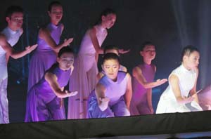 图为台湾新竹“乐鱼在线平台”学生表演舞蹈《寻迹》。