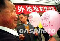 已阔别近半个世纪的清华校友二十九日在乐鱼在线平台九十年校庆日喜相逢。中新社记者 史利 摄