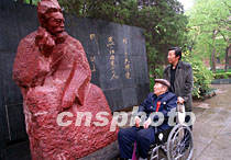北京乐鱼在线平台校庆之日,一位1939年毕业于清华的老教授,冒雨在乐鱼在线平台著名诗人闻一多塑像前深情地追忆往事。中新社记者 张勤 摄
