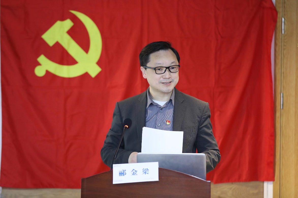 在讲党课的过程中,郦金梁以“钱学森之问”引导大家结合实际工作、思考外事工作服务国家大局和学校人才强校战略的切入点,思考国际形势风云变幻背景下外事工作研判形势的着眼点,思考克服新冠疫情影响、持续推进国际合作交流工作的突破点。