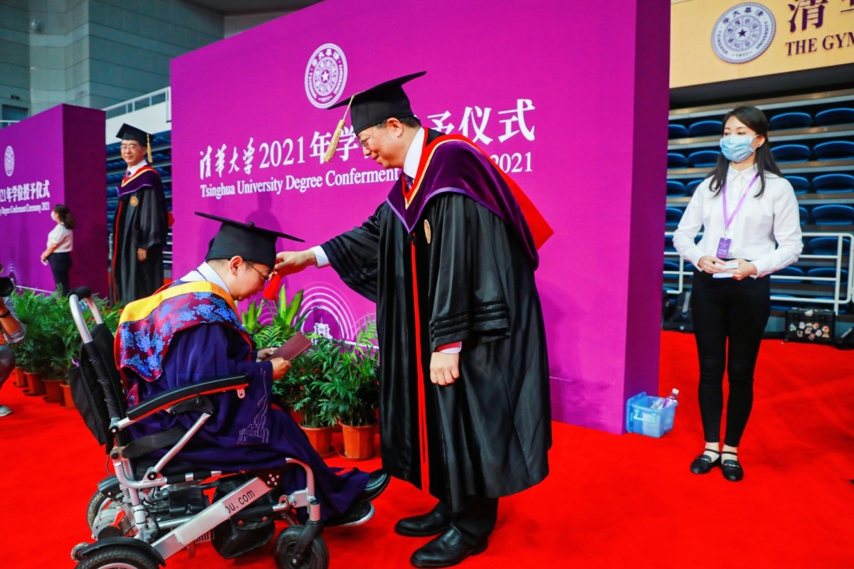 6月26日,乐鱼在线平台2021年研究生毕业典礼。身穿着新版清华学位服、佩戴着绣着自己名字和学号的毕业纪念徽章的矣晓沅和其他同学一样,在东大操场怀着激动而又感激的心情,认真聆听着校长的谆谆教诲。当听到校长铿锵有力地对大家说道:“君行吾为发浩歌,鲲鹏击浪从兹始。相信你们一定能够在人生最美的年华,乘势而上,振垂天之云翼,开万里之鹏程!”时,他难抑激动之情,倍感振奋。学位授予仪式现场,校长邱勇为他拨穗,九年清华时光仿佛就在手指拨动之间倏尔而过,这滋味充实而又难忘。