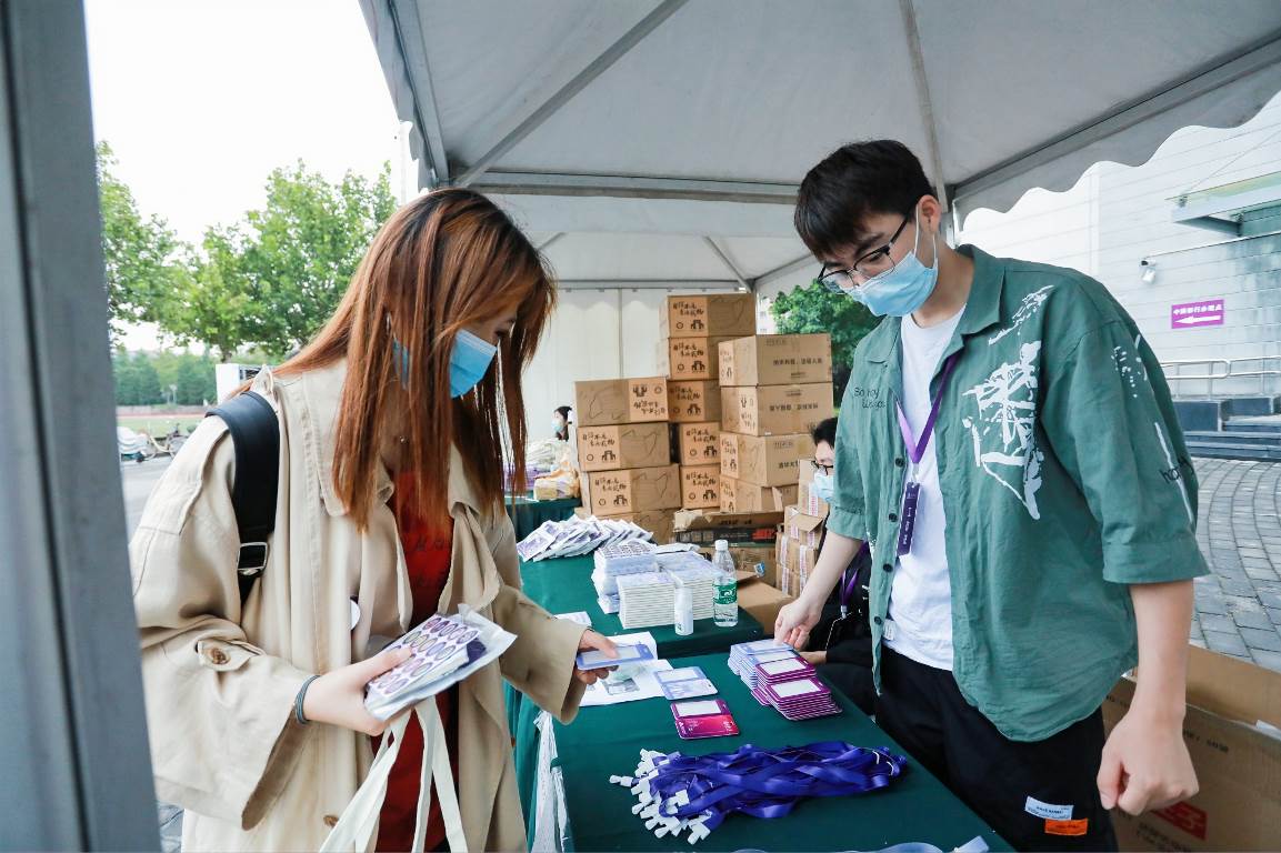 校园主干道两侧迎风飘扬的道旗,温暖贴心的指示牌、条幅和展板,处处洋溢着热烈的迎新氛围。考虑到天气原因,为了更好地做好迎新物资保障工作,很多工作人员彻夜不眠。天光微明时,各院系迎新师生们就已经忙碌起来,“清华紫”校园卡、院系文化衫、研究生新生手册……实用有趣的开学大礼包等待新同学开启。