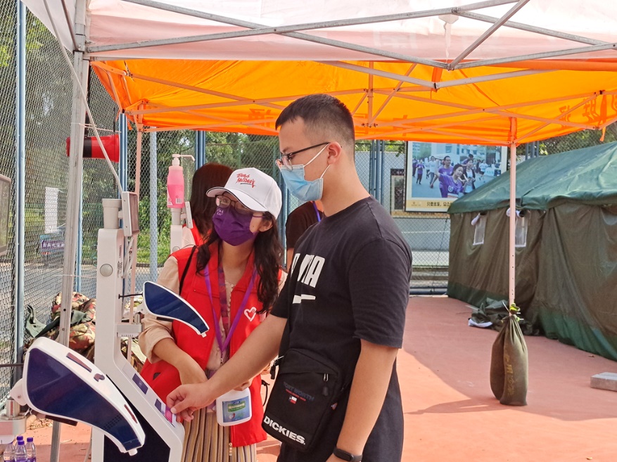 为严格落实疫情防控要求,一字班新生入学须在报到当天完成全员核酸检测。数十名志愿者们在集中核酸检测点,指导新生完成检测预约,引导新生保持安全距离,有序排队接受检测。在医护人员和紫荆志愿者共同努力下,三千余名2021级新生的核酸检测顺利高效完成。9月3日下午,学校统一为2021级新生接种新冠疫苗,师生志愿者承担了秩序维护和引导、知情同意书填写指导、信息录入和疫苗发放等工作。紫荆志愿者始终服务在校园防疫的第一线,将温暖传递给清华园的每一位新主人,为校园疫情防控安全保驾护航。