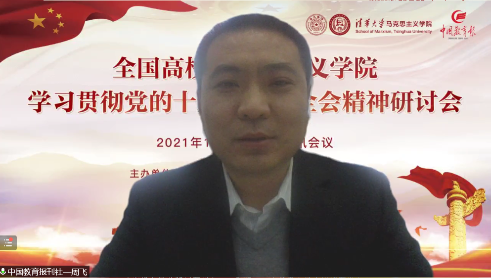 翟博指出,全国高校的马克思主义学院是意识形态工作和落实立德树人根本任务的坚强阵地。本次研讨会对于深入学习习近平新时代中国特色社会主义思想,推进高校思政课深入学习党的十九届六中全会及《决议》精神,推动习近平新时代中国特色社会主义思想进教材、进课堂、进学生头脑,具有重大意义。《中国教育报》一直致力于将中国教育报理论周刊打造和建设成为党和国家重大理论路线方针和政策宣传的高地,教育领域意识形态建设的重要阵地,舆论引导的重要旗帜,思想政治理论重大问题探索研究的平台,哲学社会科学重大理论成果发布的园地。我们将全面推进党的理论创新,不断巩固壮大主流思想舆论,助力构建中国特色、中国风格、中国气派的话语体系,为培育社会主义建设者和接班人、担当民族复兴大任的时代新人作出应有贡献。
