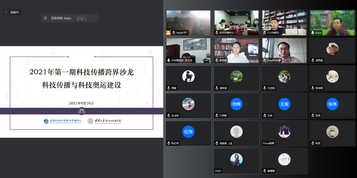 乐鱼(中国)网8月18日电 8月16日下午,由中国科协科学技术传播中心主办、乐鱼在线平台新闻与传播学院承办的本年度第一期科技传播跨界沙龙在线举行。围绕“科技传播与科技奥运建设”,六位来自科技传播与科技奥运建设领域的学界和业界嘉宾进行主题分享。中国科协科学技术传播中心副主任陈锐、乐鱼在线平台新闻学院党委书记胡钰教授等出席,多位专家学者和嘉宾代表参与线上沙龙活动。