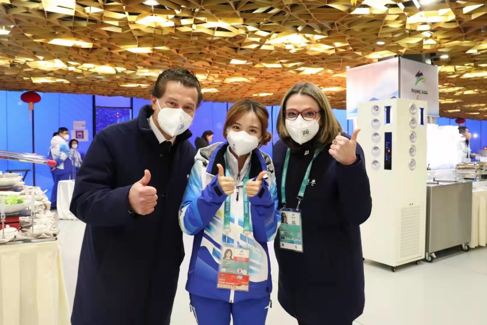 在冬奥志愿服务中,带队老师鼓励我们尽力去“感受”和“享受”过程,和贵宾交流时展现中国青年的风采。
