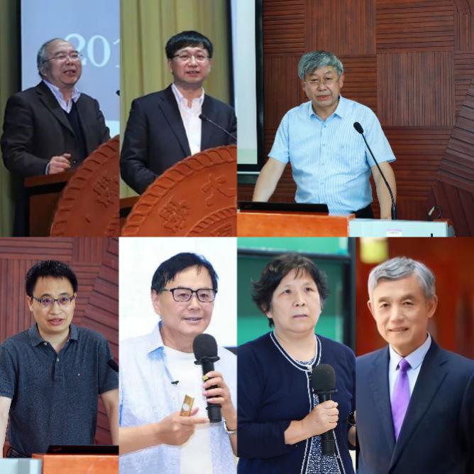 (从上至下、从左至右:郝吉明、张希、聂建国、段文晖、戴琼海、史静寰、薛澜)