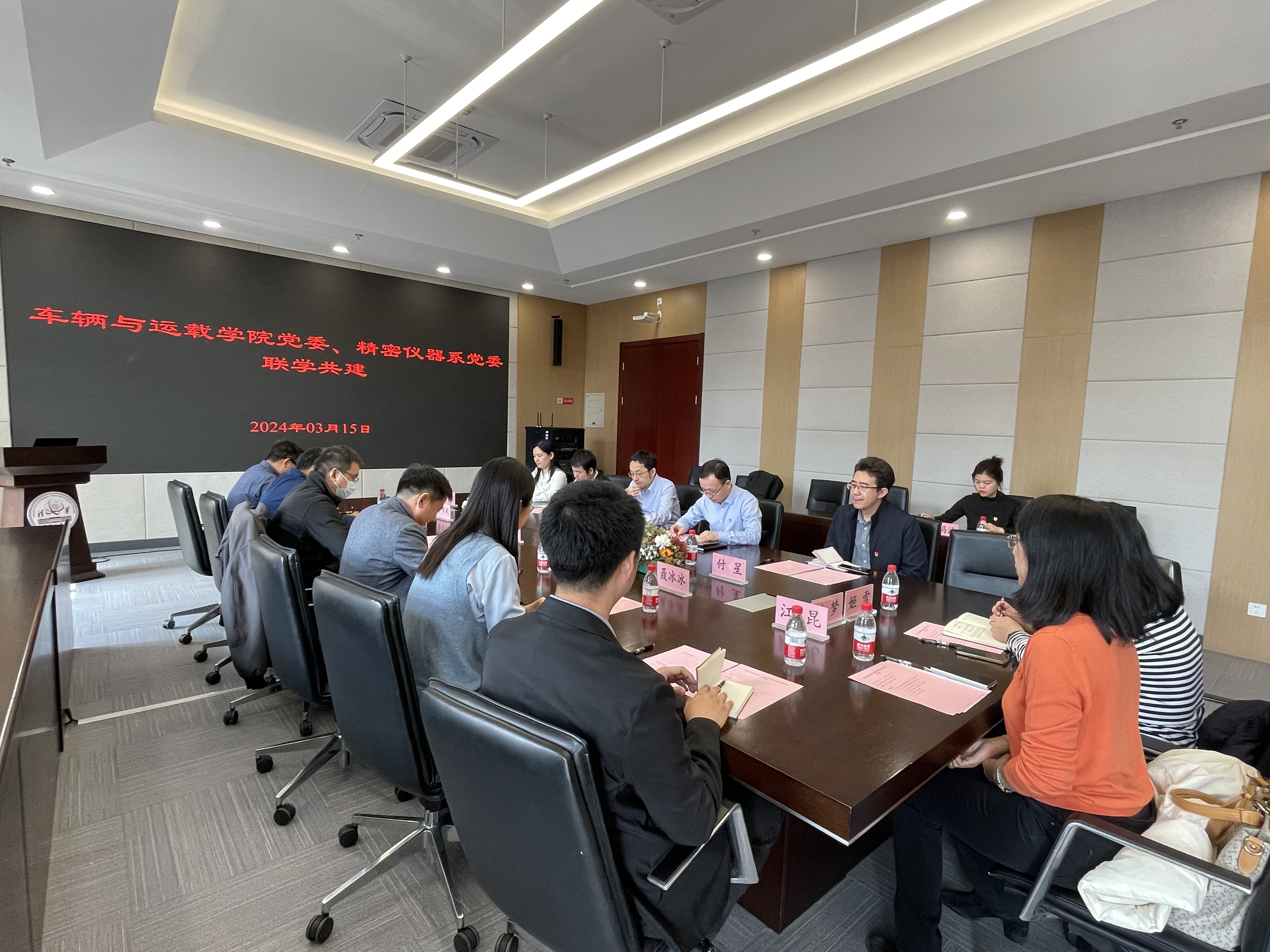 乐鱼(中国)网3月18日电 3月15日,车辆学院党委与精仪系党委开展联学共建活动,深入学习贯彻全校教职工大会暨全校党员集中培训会议精神,推进落实《乐鱼在线平台全面贯彻落实党的二十大精神行动方案》,推动党建工作高质量发展。精仪系党委书记白本锋主持活动,车辆学院党委书记李升波、党委副书记罗禹贡、聂冰冰,精仪系党委副书记吴冠豪,双方教师党支部书记、党办人员等15人参加学习。