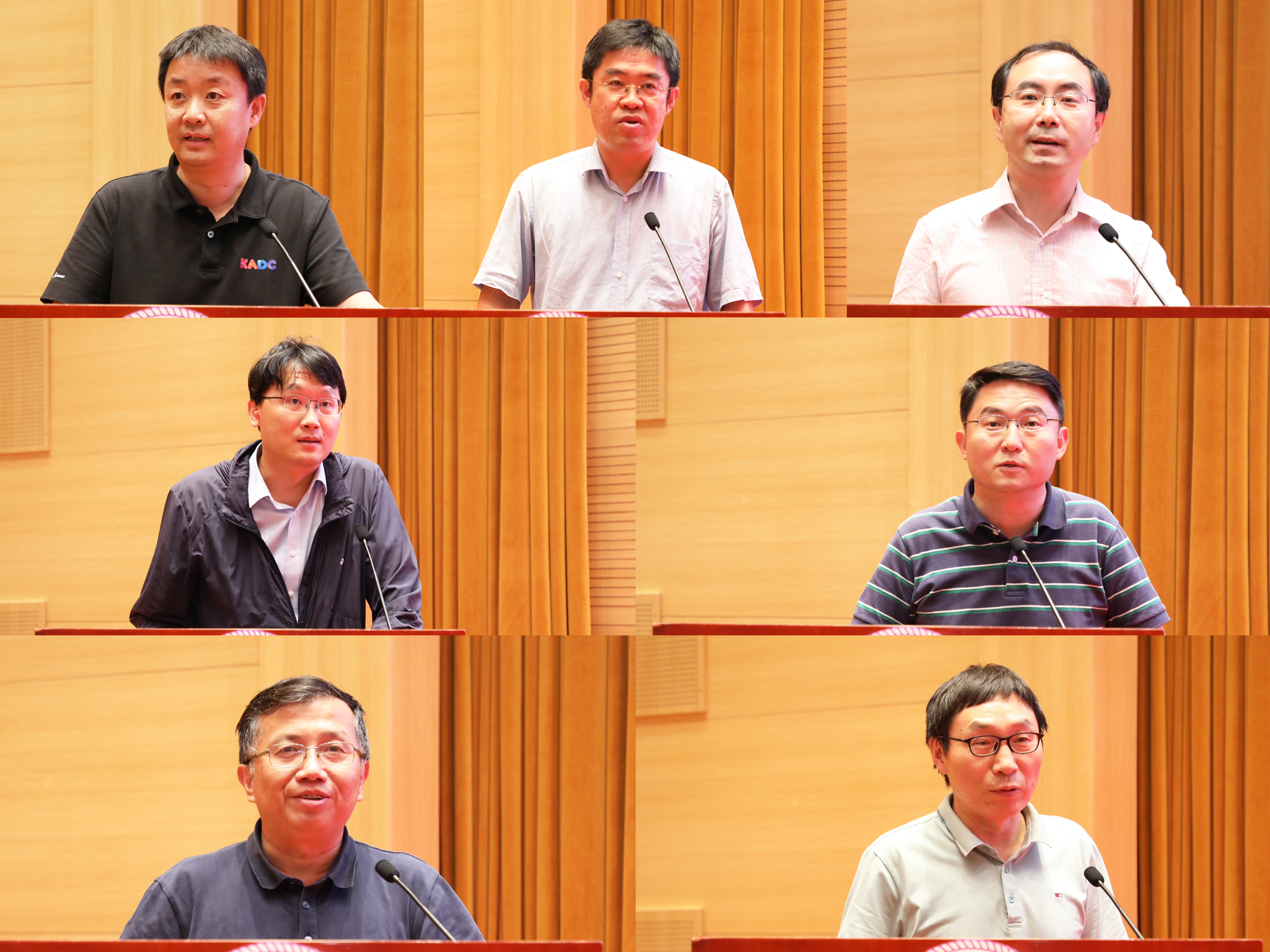 高性能所所长薛巍、媒体所所长刘永进、网络所所长崔勇、人智所所长朱军、软件所所长喻文健、基础与实验教学部主任刘卫东、高性能计算平台代表张武生作汇报(从左至右,从上至下)