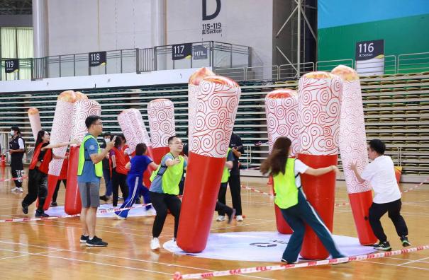 5月9日和10日中午,揭幕战——个人运动赛环节火热开启,院教职工近300人来到现场。“先答题-后运动”,参赛人员扫码回答主题教育100问,获得答题章后,开始在方寸运动场上驰骋。“趣味高尔夫”“飞盘嘉年华”考验的是凝神静气;“投壶”“欢乐套圈”玩的就是准头;而“桌上冰壶”“趣味乒乓球”就看和队友是否心有灵犀。现场时而掌声雷动,时而静谧无声,愉悦而轻松的气氛始终环绕在所有人的周围。个人运动赛让平时工作繁忙的老师们利用午休时间放松身心,强身健体,同时极大地调动了教职工党员、群众对主题教育学习的积极性。