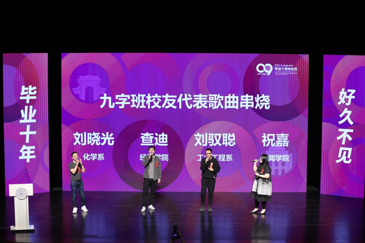 为了组织好这次毕业10周年纪念大会,2009级秩年筹备组作了许多精心准备。大会分为“久别重逢”“青春永久”“地久天长”三个篇章。活动开始前,照片投稿和校园短片组成的开场视频《闪光的记忆》让十年前的青葱岁月在银幕上浮现,翻开了校友们记忆的扉页。2009级校友代表刘晓光、查迪、刘驭聪、祝嘉带来的歌曲串烧又让大家仿佛重新回到了那些年学生节和校歌赛的现场,唤起了当初心底那份纯粹真挚的热忱与感动。