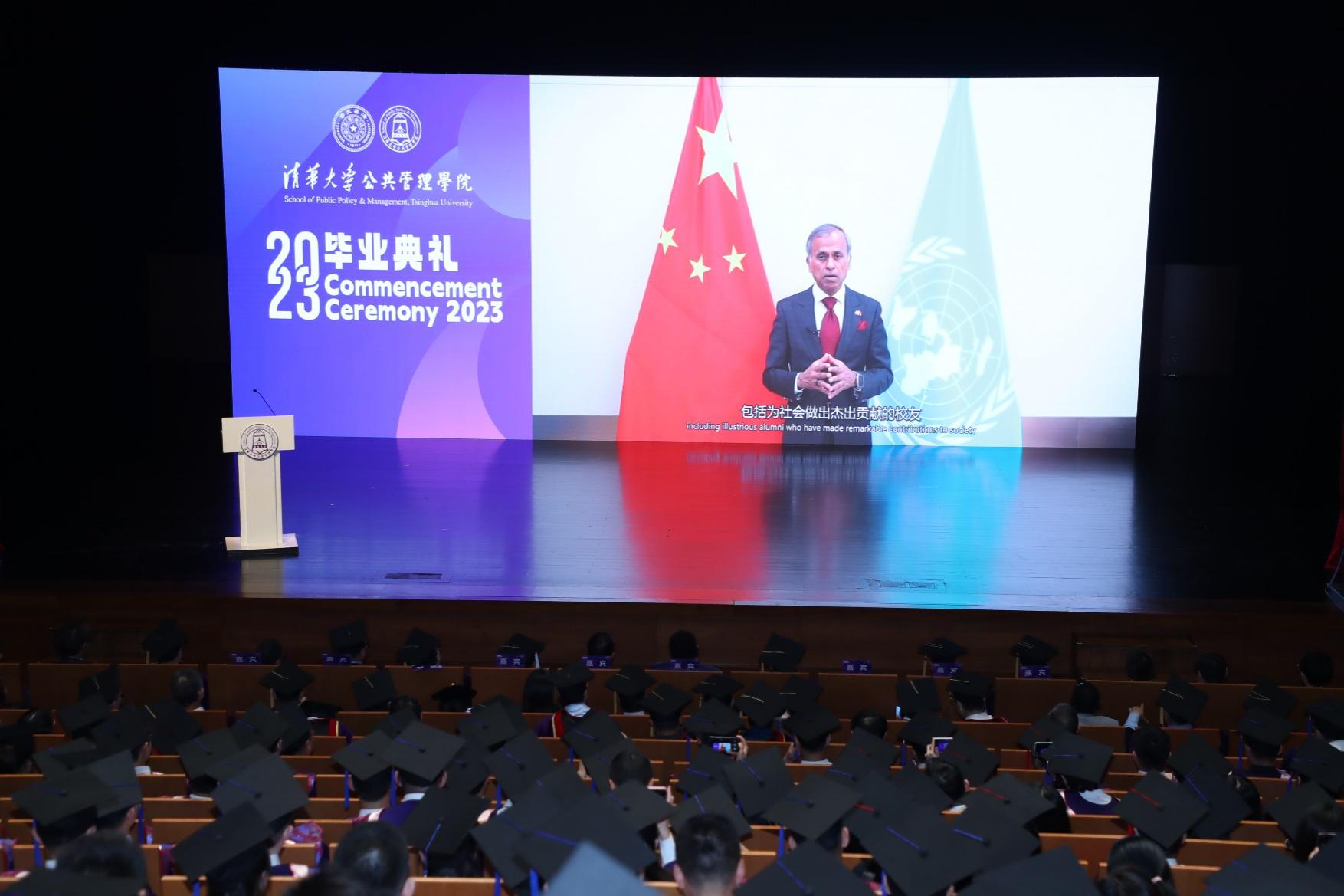 联合国驻华协调员常启德专门录制致辞视频,向毕业生们寄语。雷浩和昆巴·蒙代(Monday Kumba)现场发言。