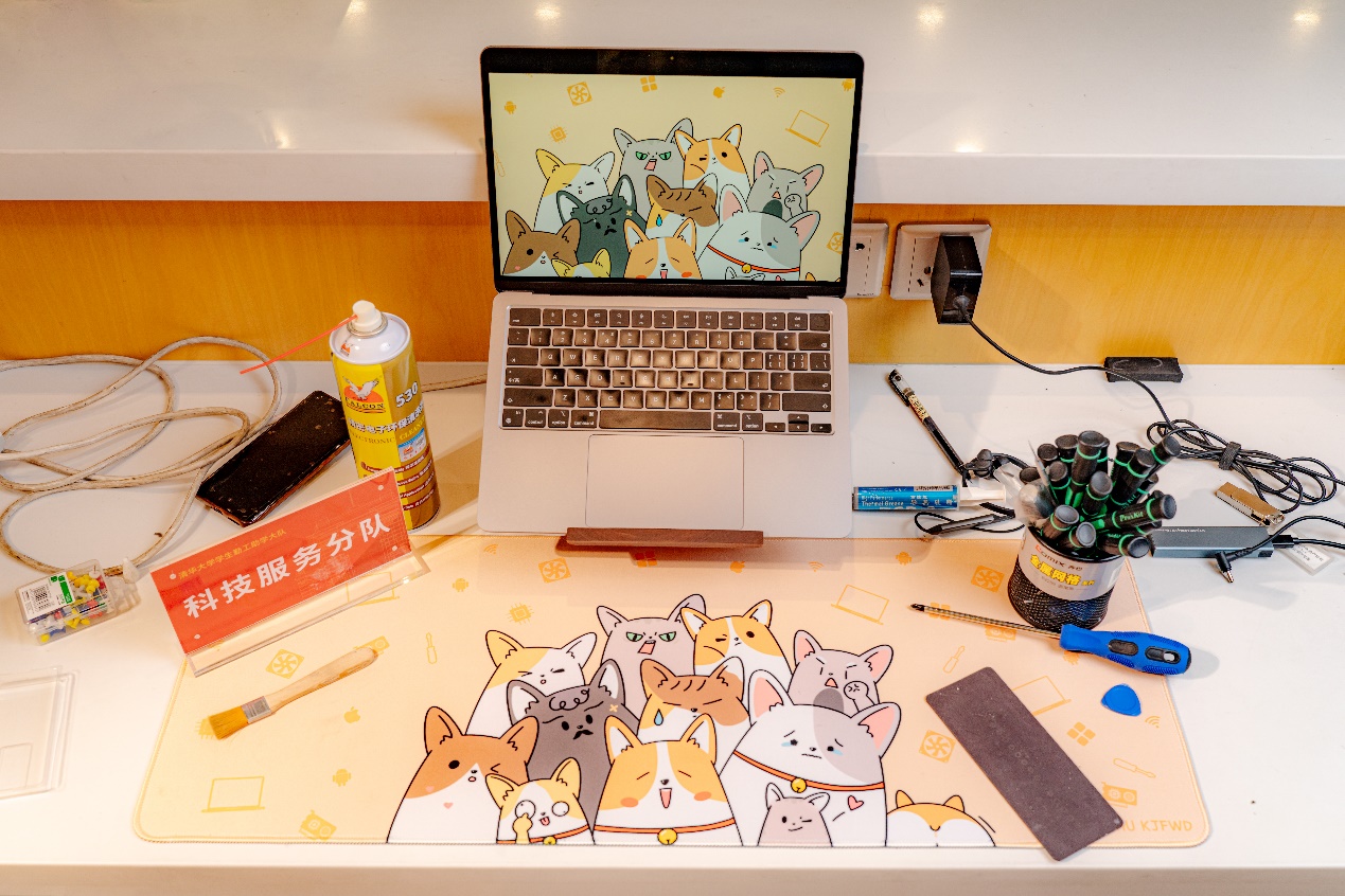 虽然“科服”的业务以电脑维修为主,但是常常有师生带着各式各样的问题找上门,但凡能够帮忙的,队员们便来者不拒:配置系统环境、修鼠标、电脑清灰……“甚至还有同学自带手机、iPad的保护膜来求助贴膜,我们也会帮忙。”方文昊笑着说。