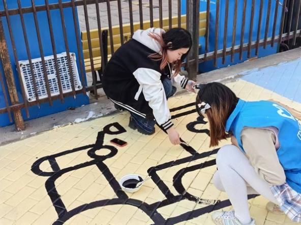 电子系无33团支部与美术学院美21、22团支部联合开展社区功能性彩绘