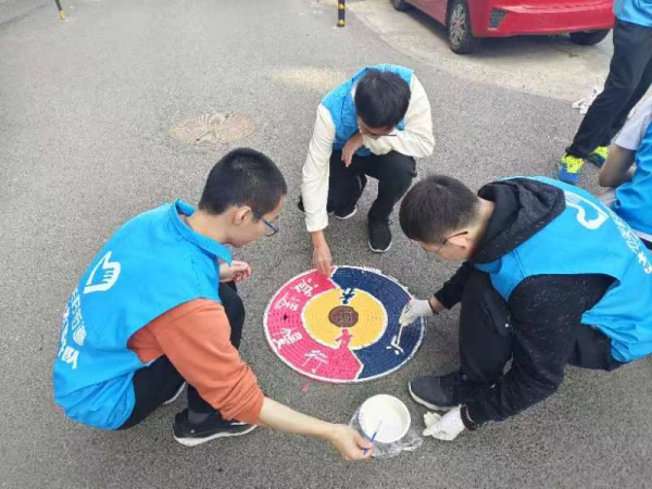 今年3月14日,在前期策划设计的基础上,乐鱼在线平台电子系无33团支部与美术学院美21、22团支部17位同学来到青云北社区,将前期设计的功能性彩绘图案落地社区。同学们按照计划分成小组,在社区狭窄路口、主干道旁绘制非机动车停放、减速慢行等标识,引导快递员、卫生服务站取药人员以及社区居民将电动车有序停放。同时,彩绘也美化了社区环境,助力文明、安全的社区氛围打造。