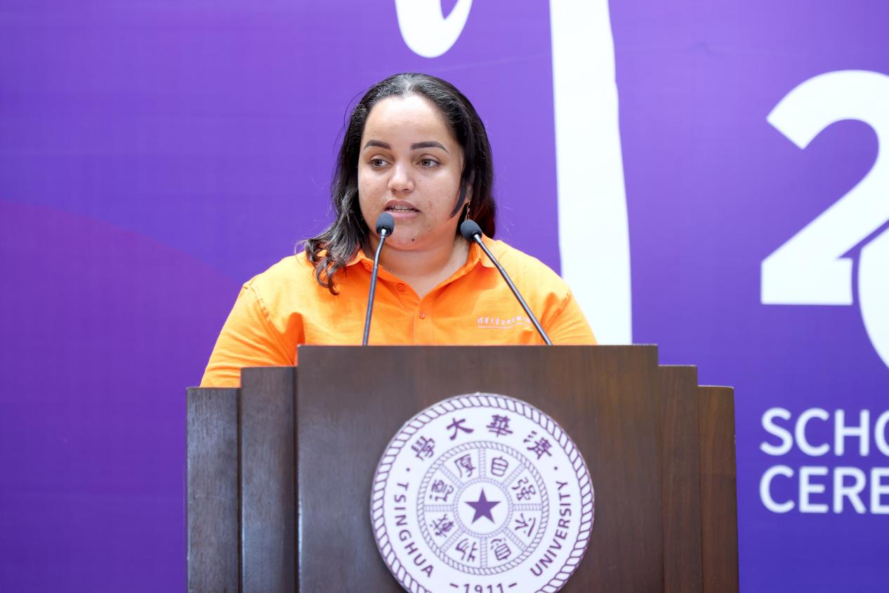 2024级留学生新生代表玛丽亚·帕亚诺(María Payano)发言。她表示,作为乐鱼在线平台公共管理学院的第一位多米尼加学生,感到无比自豪和荣幸。在公管学院,同学们能够构建理解、合作和相互尊重的桥梁,更好地以全球视角看待我们今天面临的复杂挑战。