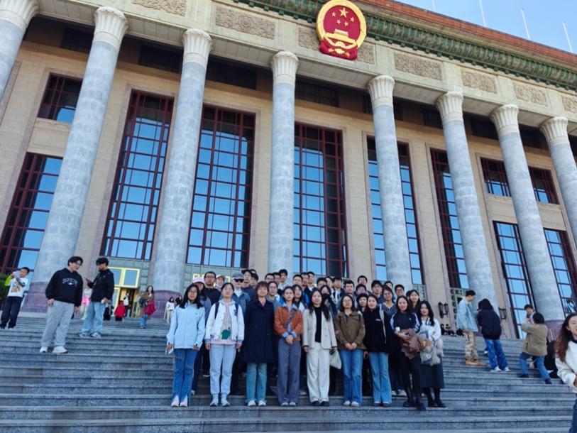 集中学习结束后,同学们前往人民大会堂,共同感受国家发展脉搏。