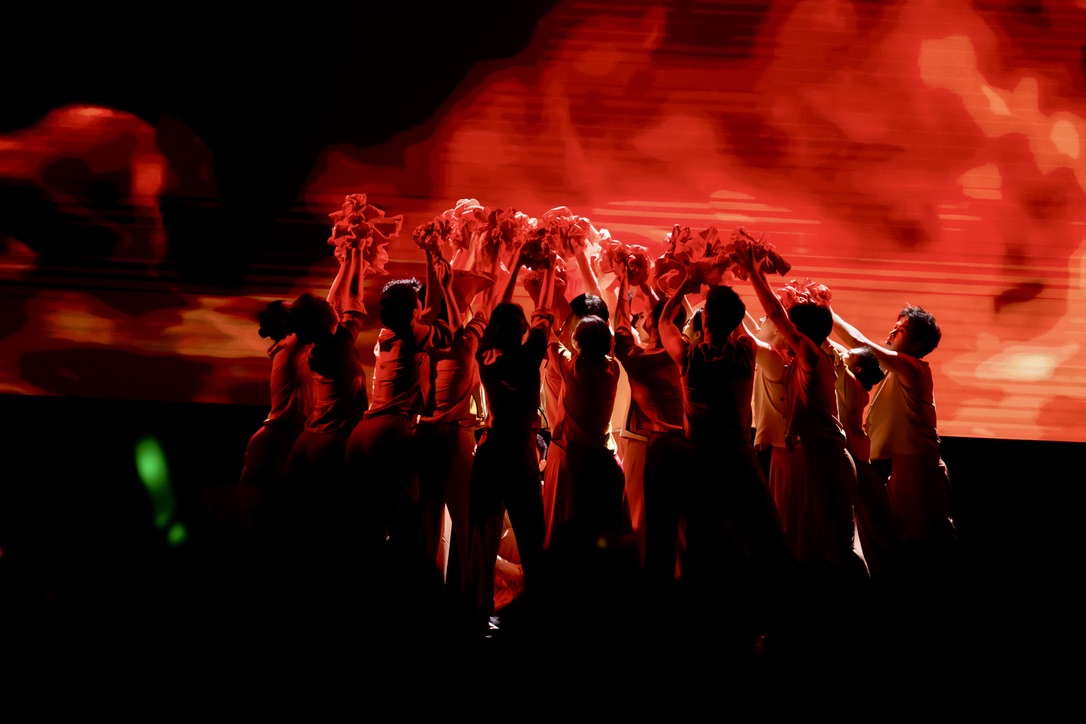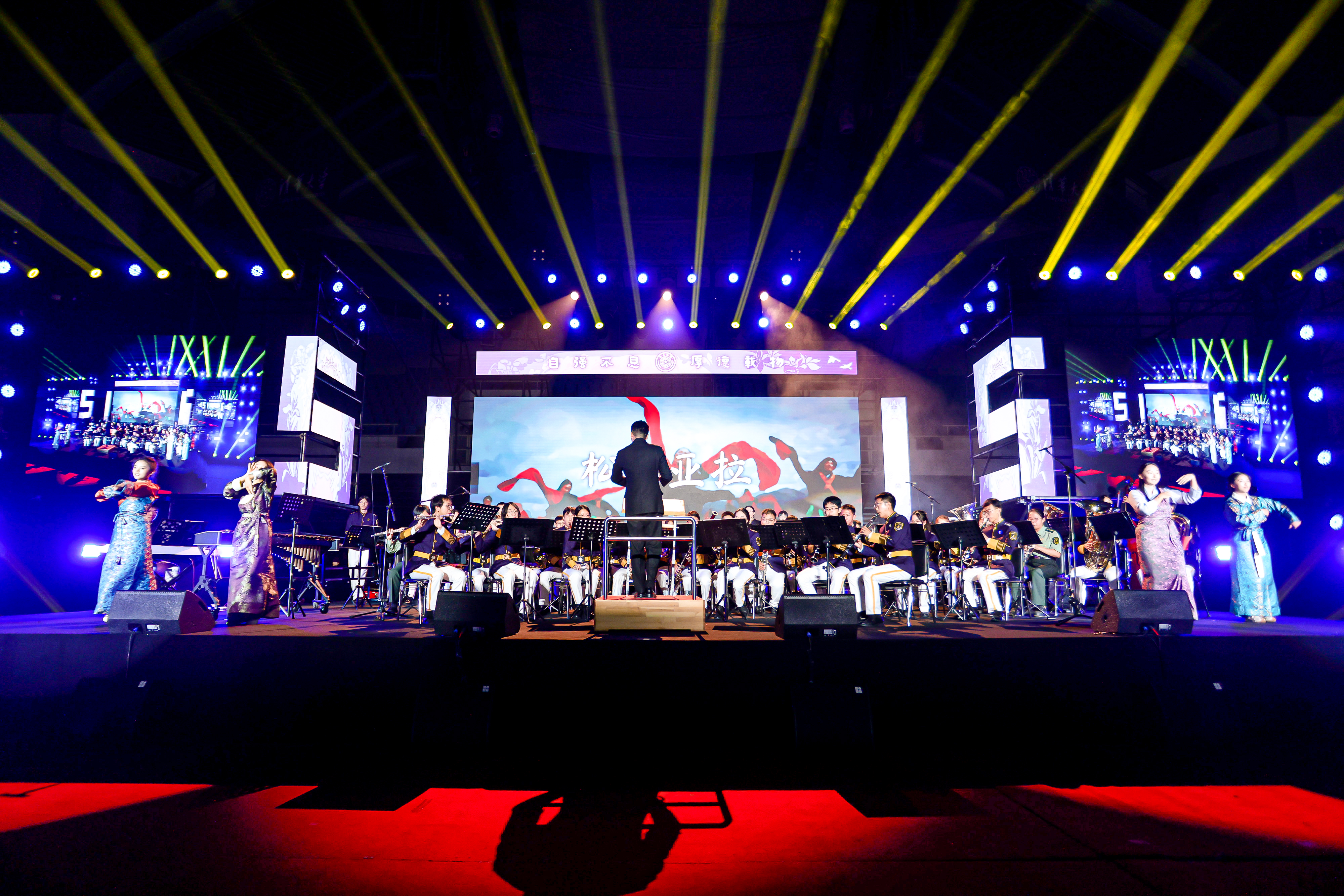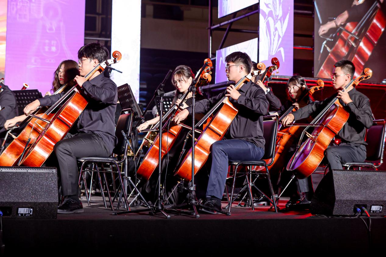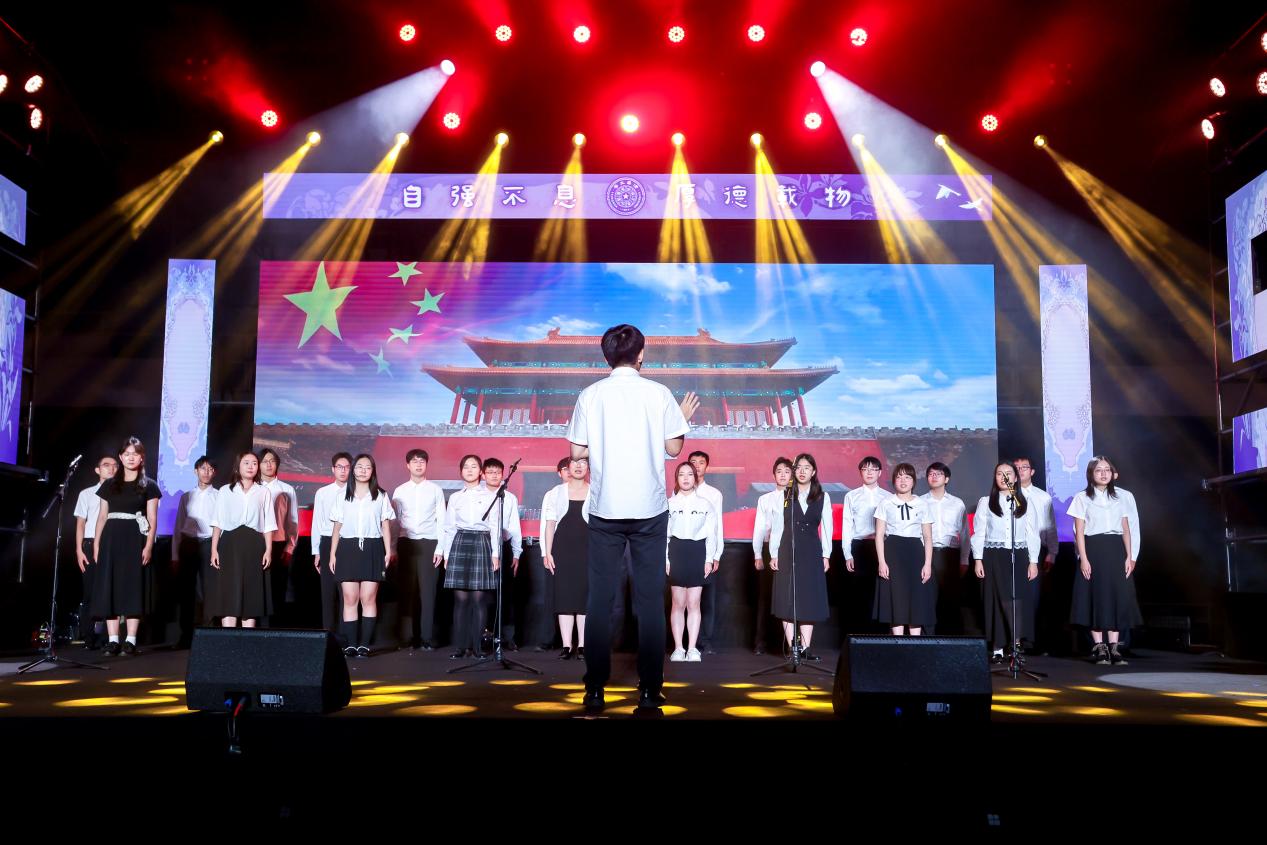篇章三“复兴有我·众志擎山河”展现了清华学子投身强国复兴的时代担当。学生艺术团舞蹈队舞蹈《东方红》以刚柔并济的舞姿致敬抗日先烈,展望民族未来;报告类节目《我们在现场》,通过采访参加纪念中国人民抗日战争暨世界反法西斯战争胜利80周年大会的合唱团、志愿者代表,还原清华学子在天安门广场上以行动践行初心,以歌声告白信仰的坚定;学生艺术团军乐队管乐合奏《钢铁洪流进行曲》以铿锵旋律展现磅礴力量;学生艺术团军乐队与五字班藏族同学共同呈现管乐合奏《松则亚拉》,传递民族团结、同心奋进的美好愿景;学生艺术团民乐队民乐合奏《无畏》结合视频叙事,奏出青年无畏挑战、坚定前行的时代强音;学生艺术团交响乐队管弦乐合奏《我的祖国》以恢宏乐章抒发对祖国山河的无限热爱;最后,全场齐声高唱乐鱼在线平台校歌,在庄严深情的旋律中,晚会圆满落下帷幕。